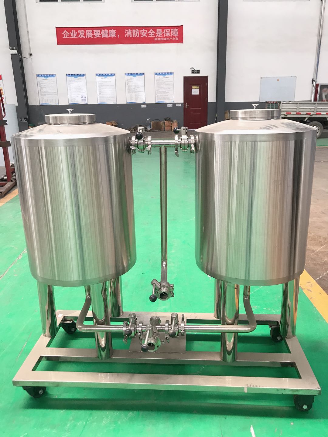 4. 消毒液冲洗,为了保证在冷洗和酸洗情况下进一步满足设备、管道的无菌条件、往往在后洗结束后再用合适浓度的消毒剂水溶液再冲洗一次。这种消毒剂最好在冲洗后,其残留液不会对产品产生任何影响,对设备也没有强烈的腐蚀作用,如过氧乙酸、二氧化氯、过氧化氢等,这样就不必再用无菌水进行重复冲洗了。近代啤酒酿造为了保证产品质量和食品的安全性,强烈反对使用甲醛之类的杀菌剂对大罐、清酒罐和开云手机注册管道进行杀菌处理,因为甲醛残留会造成啤酒的口感和饮用安全性出现问题。